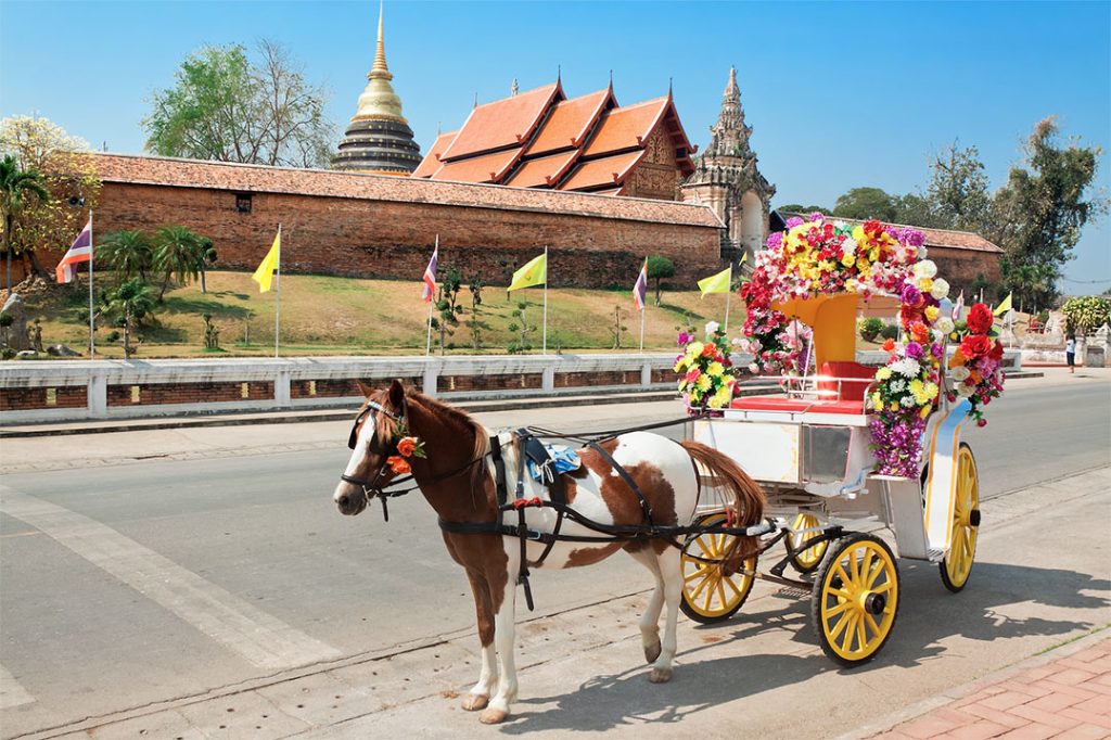 วิธีเดินรถม้าหรือรถม้าลำปาง (horse-drawn carriages) เป็นเอกลักษณ์เฉพาะตัวของเมืองลำปาง
